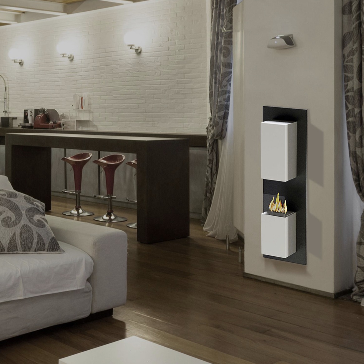 Avec ses dimensions de 36 x 114 x 18 cm, la Kaptur XL s’intègre facilement dans divers types d’intérieurs, que ce soit un salon, une salle à manger ou même un bureau. Elle s’adapte à différents styles décoratifs tout en apportant une touche contemporaine à votre espace. Son pare-feu en vitre offre non seulement un visuel agréable des flammes mais aussi une sécurité renforcée.